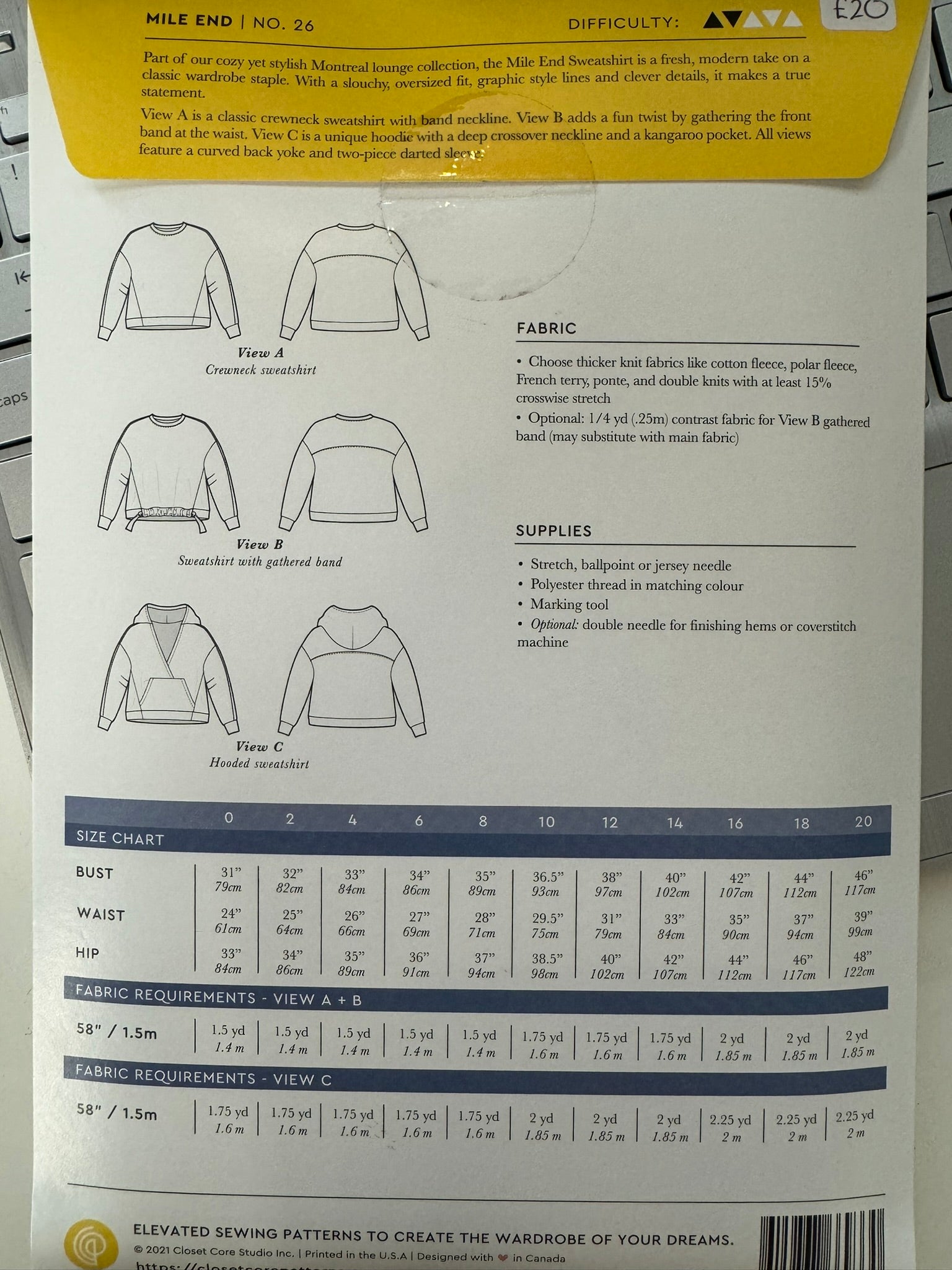 Closet Core Mile End Sweatshirt / Hoodie Pattern