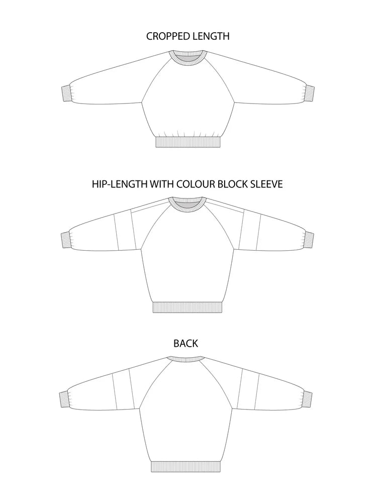 Meet your new obsession, the Drew sweatshirt sewing pattern. The easy-fitting style and raglan seams make for a speedy and satisfying sew, and a perfect introduction to sewing with stretch knit fabrics – whether you make it on a regular sewing machine (with a zigzag stitch) or overlocker. is up to you. Keep it simple with one solid colour or print, or let your creativity loose with the playful colour block sleeve (great for scrap busting!).