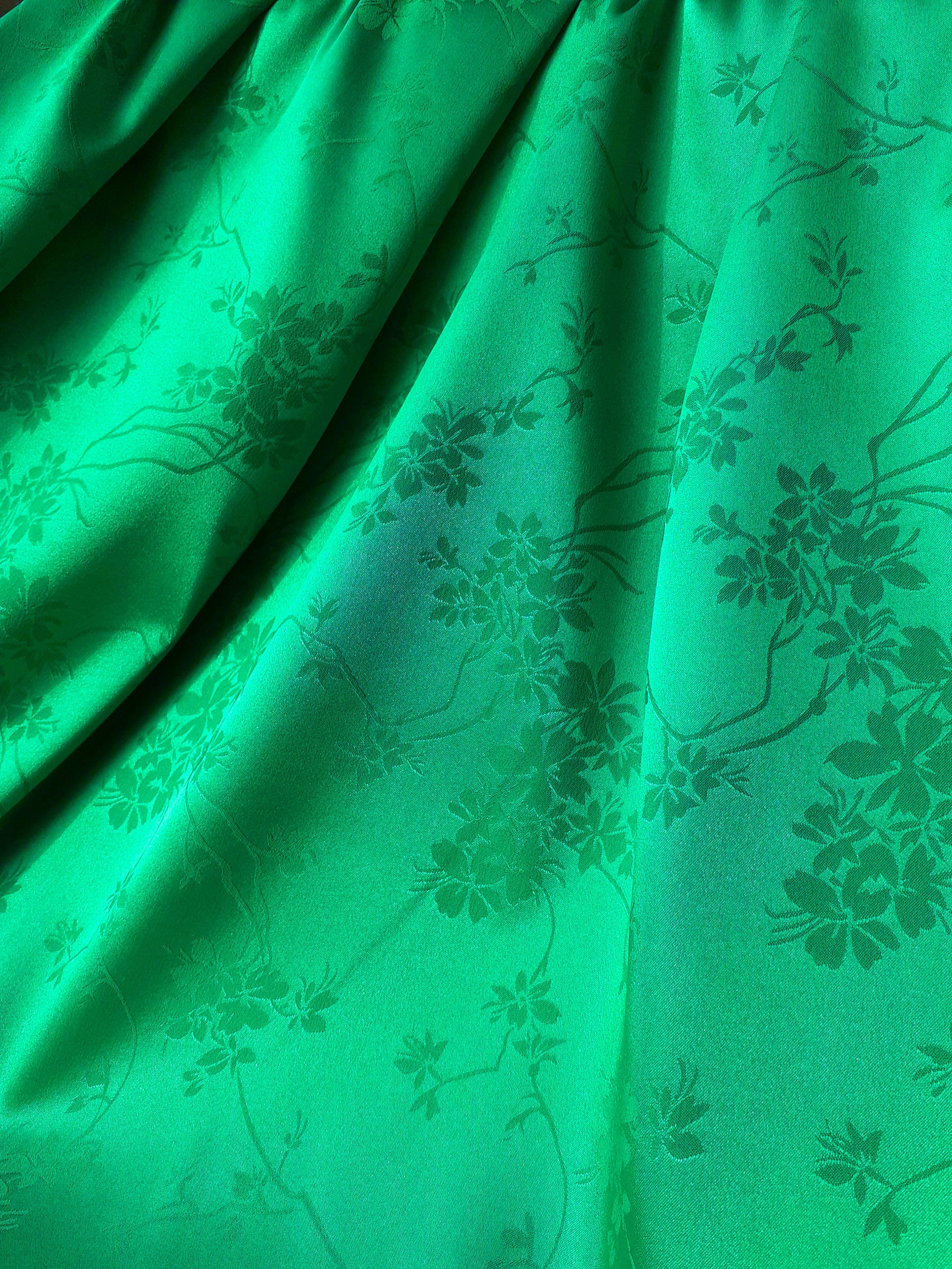 Add some wow to your next tailoring or dressmaking project with this soft, silky, emerald green flowery jacquard lining fabric. Check out this fabric in Cerise Pink too!
