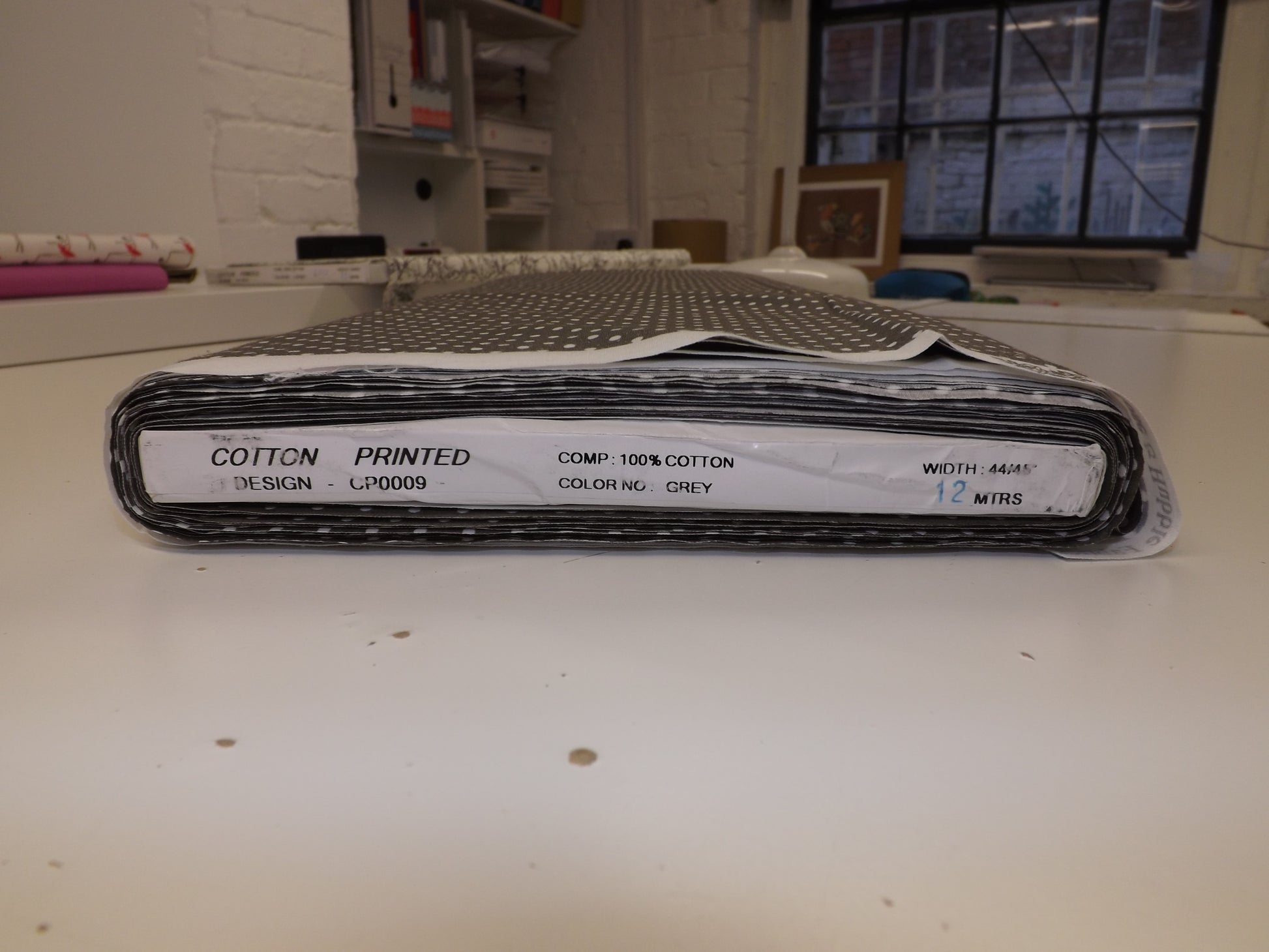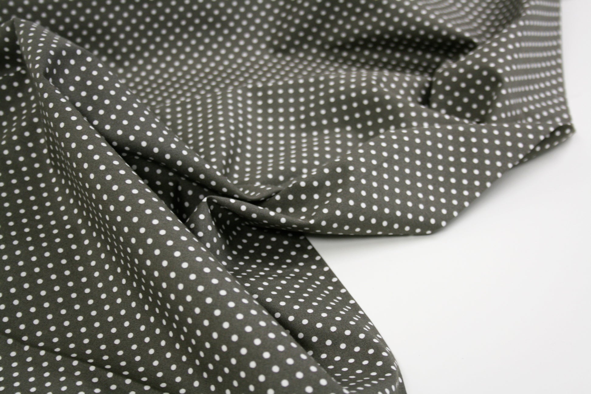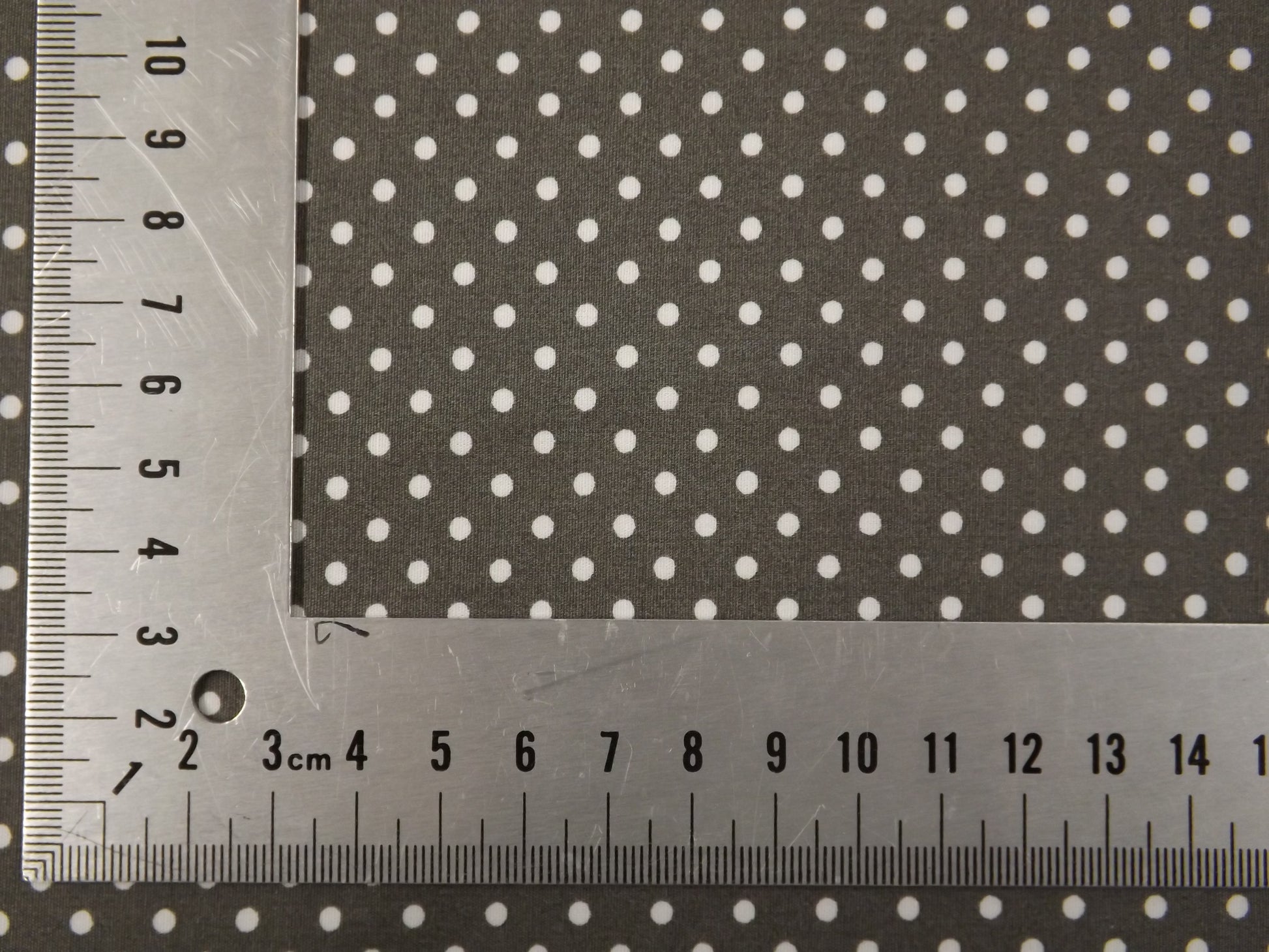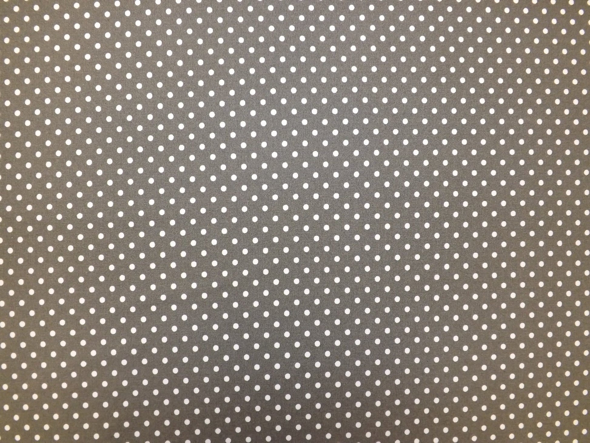 Description: Lovely quality, mid-grey and white polkadot Cotton, suitable for dressmaking, crafting, patchwork and quilting.