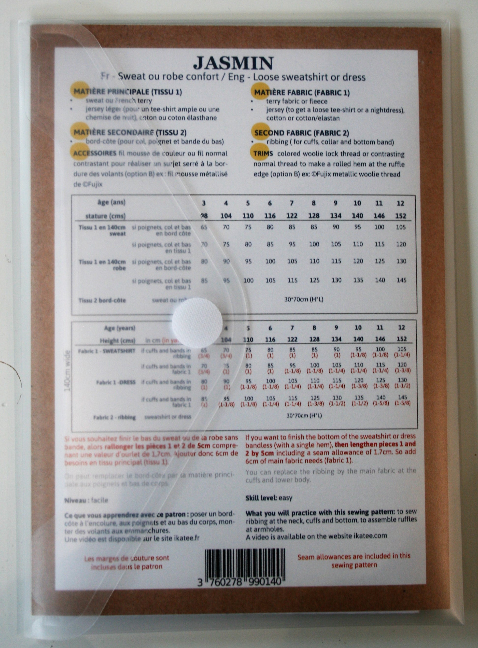 What you will learn with this pattern: put a ribbing at the neck, cuffs and lower body, assemble ruffles at armholes.