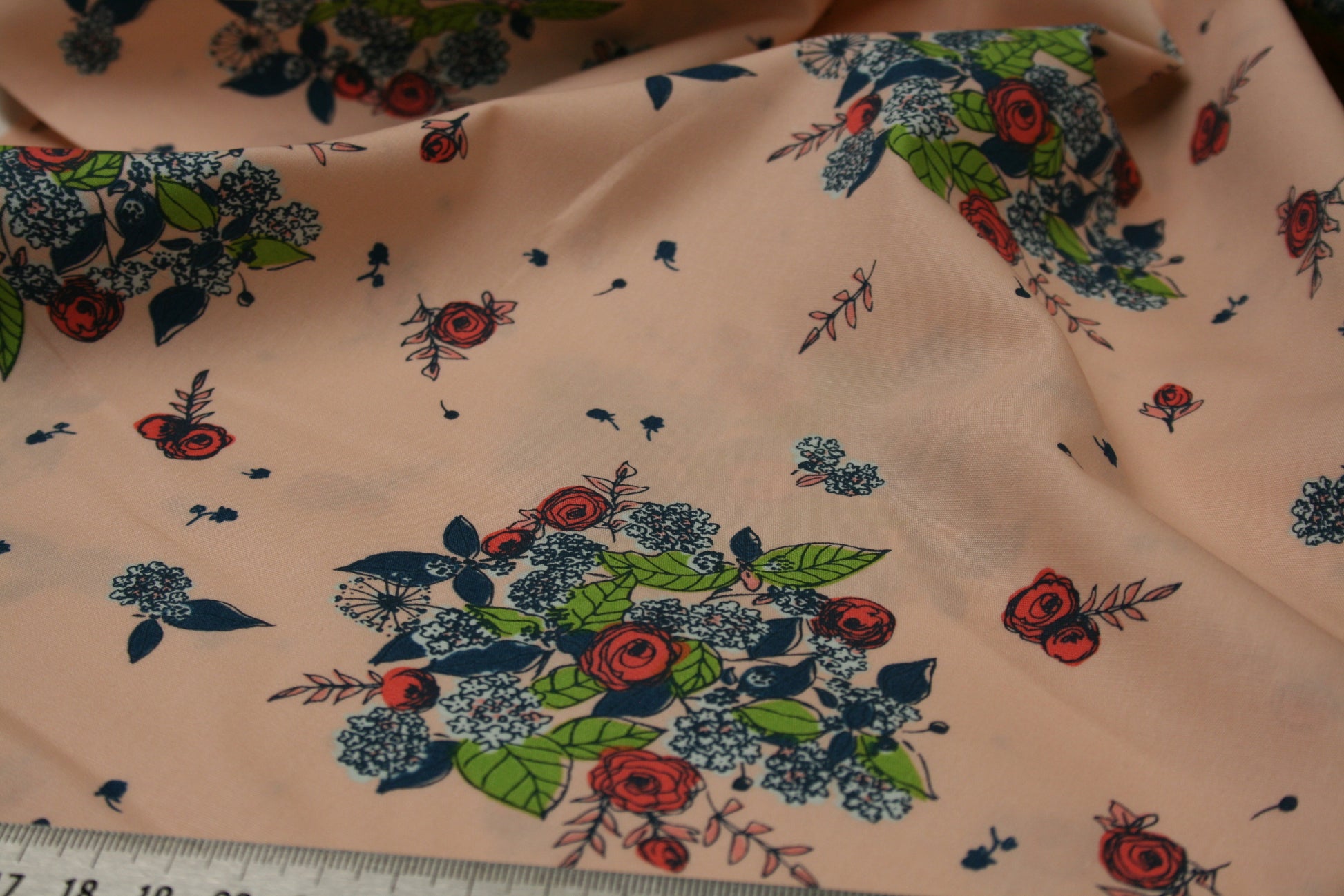 Description: A quality cotton with pale pink background and cheerful floral print. This fabric is perfect for crafting, patchwork, quilting, dressmaking, baby and childrenswear.
