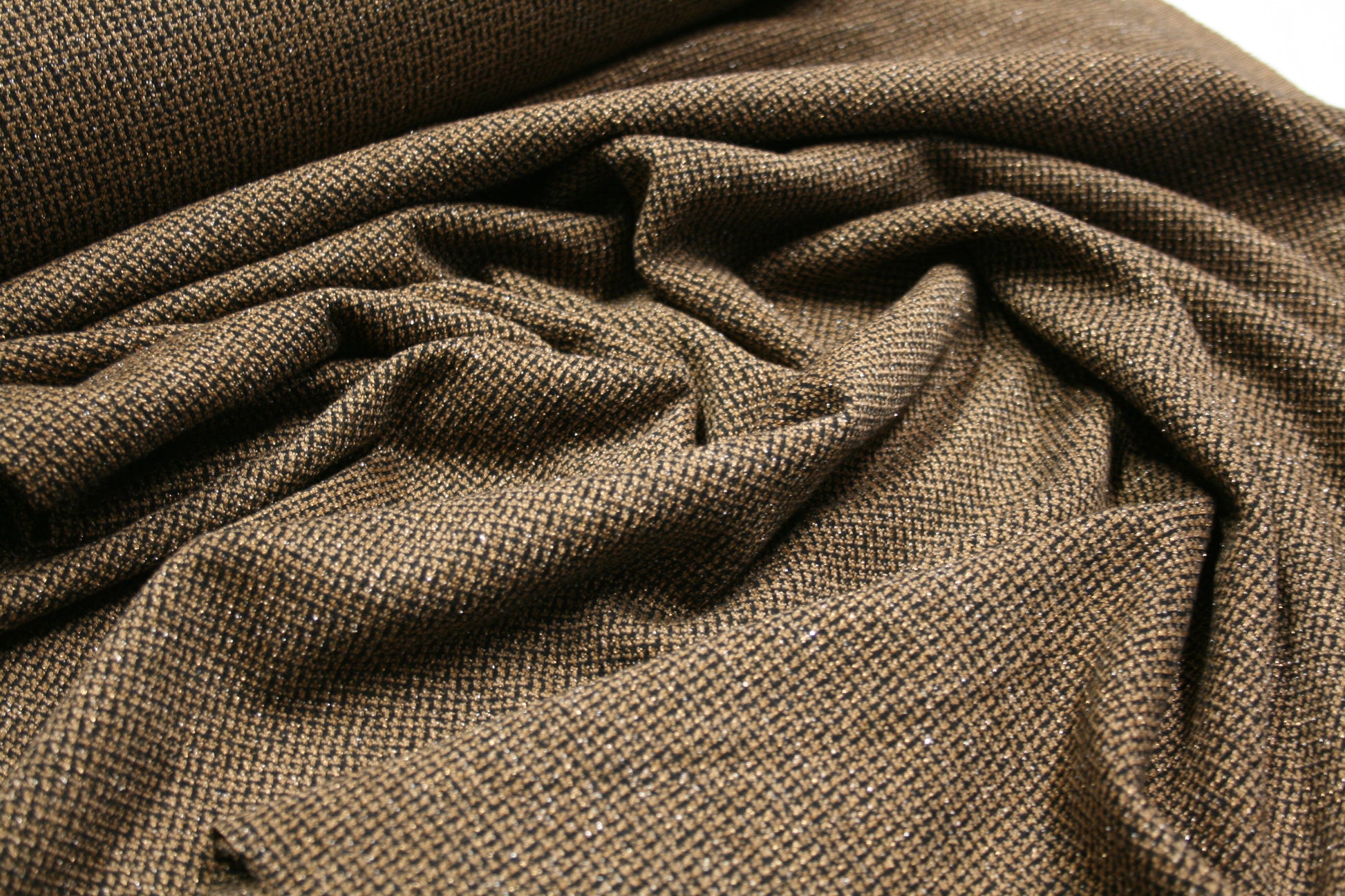 Description: Gorgeous rich brown / rust mix fabric with slight stretch and gold metallic thread running through. Perfect for dressmaking - dresses, skirts, trousers, jackets!