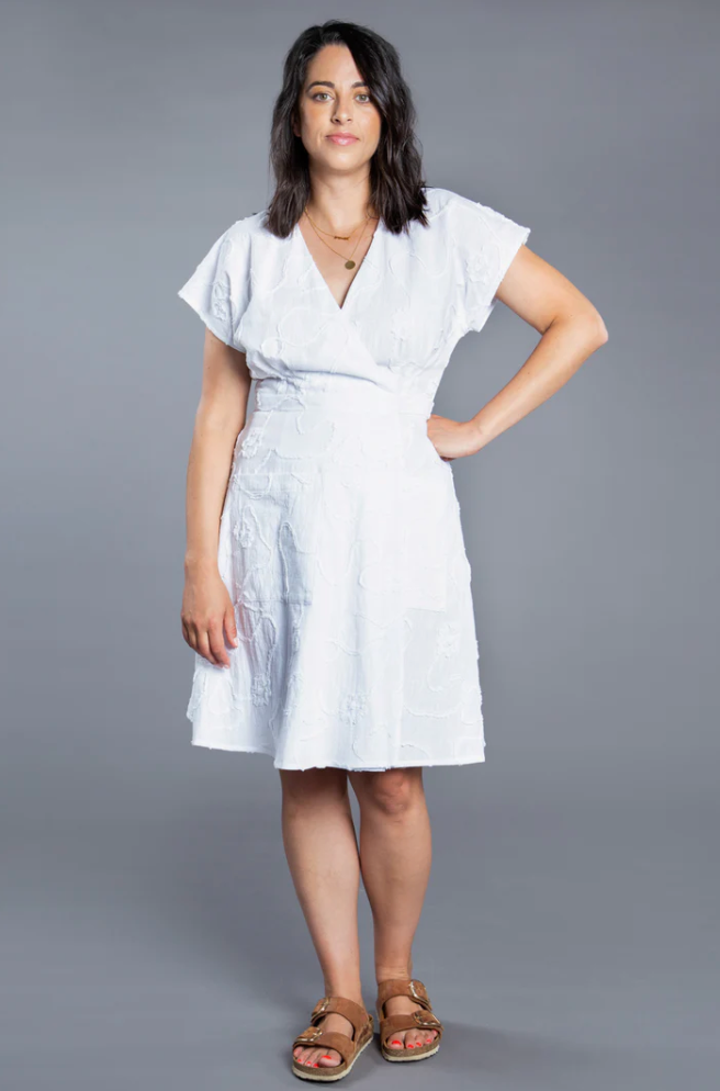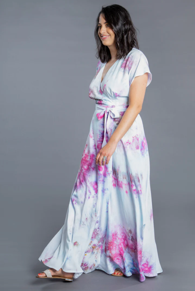 "Elodie is a modern take on a classic wrap dress. Romantic and flowy with multiple skirt and sleeve options, it’s equally appropriate at a park picnic or a special wedding.
